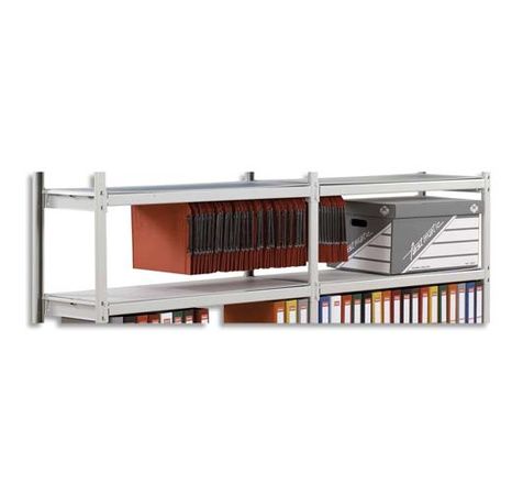 Système prêt à monter sans vis ni boulons. Montage facile par simple emboîtement. Montants en acier 15/10ème époxy gris. Cadre acier 8/10 epoxy gris. Possibilité d'ajouter à droite ou à gauche un ou plusieurs éléments de mêmes dimensions. Utilisation 5 niveaux intervalles pour DS ou 4 niveaux pour DS et 1 niveau pour boîtes archives.