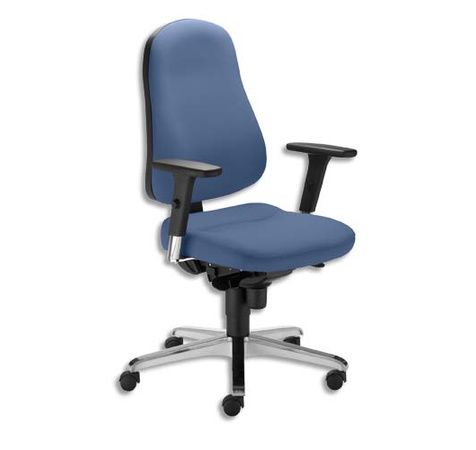 Mousse haute densité 45 kg/m3. Dossier et assise en tissu 100 % polyester non feu M1, règlable en hauteur. Assise coulissante réglable en profondeur. Mécanisme synchrone à contact permanent réglable en intensité et réglable multipositions . Accoudoirs 3D réglables en hauteur, largeur et profondeur. Piétement en fonte d'aluminium polie avec 5 roulettes autofreinées. Supporte jusqu'à 130 Kg.