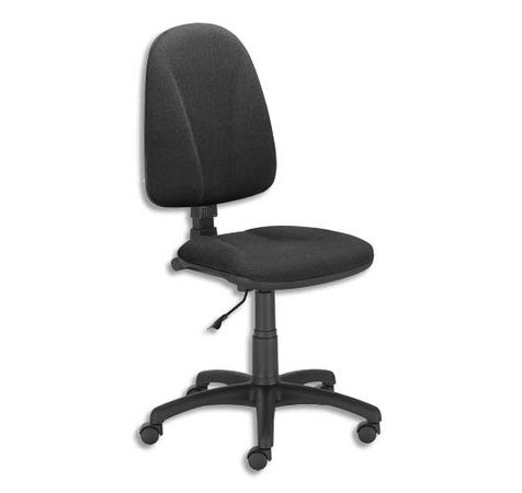 Dossier haut (50 cm) avec renforts lombaires. Assise galbée. -Densité de la mousse 30 kg/m3. Carénage dossier et assise en polypropylène noir. Tissu polyfibre. Piètement nylon 5 branches. Dossier réglable en hauteur et profondeur. Assise réglable en hauteur par vérin pneumatique. Mécanisme à contact permanent.