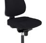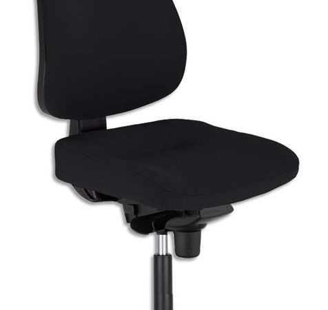 Mousse haute densité 45 kg/m3. Dossier et assise en tissu 100 % polyester non feu M1, règlable en hauteur. Assise coulissante réglable en profondeur. Mécanisme synchrone à contact permanent réglable en intensité et réglable multipositions . Accoudoirs 3D réglables en hauteur, largeur et profondeur. Piétement en fonte d'aluminium polie avec 5 roulettes autofreinées. Supporte jusqu'à 130 Kg. Dimensions assise (l x p) : 48 x 40/47 cm. Dimensions dossier (l x h) : 48 x 61 cm. Accoudoirs en option . Coloris : Noir