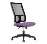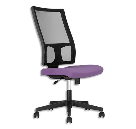 Siège haut dossier en résille portante (coloris noir). Densité de mousse 35 kg/m3. Mécanisme synchrone avec réglage central de la tension en fonction du poids de l'utilisateur, blocage multipositions et anti-retour de sécurité. Hauteur d'assise réglable 40 à 52 cm. Dimensions assise (l x p) : 47 x 45 cm. Dimensions dossier (l x h) : 45 x 60 cm. Accoudoirs réglables en option . Coloris : Assise mauve
