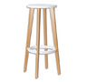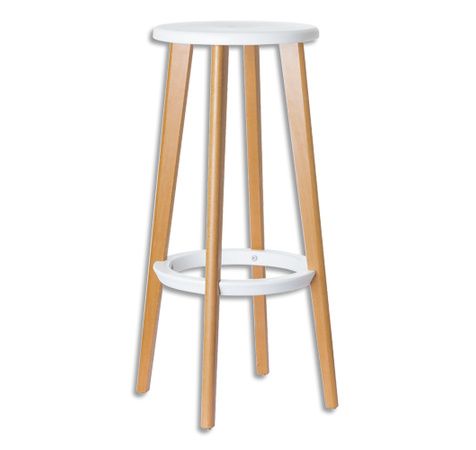 Assise en ABS injectée, coloris blanc. Piètement hêtre massif vernis. Entretien facile de l'assise. Diamètre 33 cm. Hauteur 76 cm.