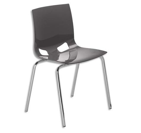 Chaise 4 pieds, tube époxy alu diam 20 mm, monocoque en polypropylène injecté aspect glossy, patins anti tâche. Empilable .