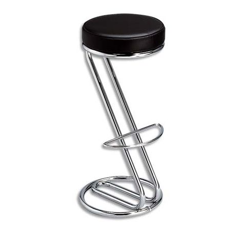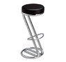 Design contemporain. Structure en tube chromé. Assise en simili cuir noir rembourrée Ø 34 x h 6 cm.