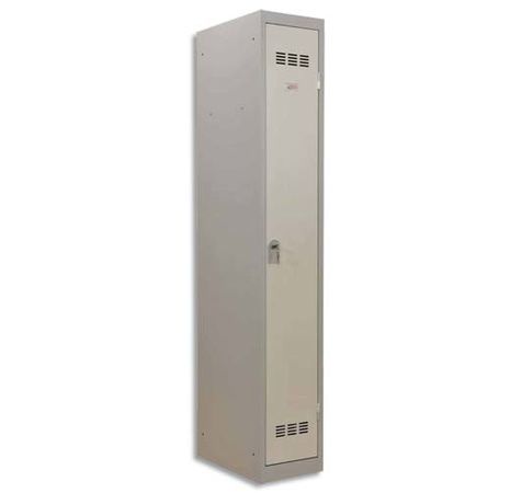 Construction monobloc soudée en tôle d'acier 1er choix épaisseur 0,7 mm. Socle fond plat. Perforations à l'arrière du fond pour permettre l'évacuation des poussières et liquides. Fermeture par moraillon débraillable porte-cadenas (cadenas non fourni). Anti effraction par rotation. Niveau de résistance à l'effraction : classe C, selon la norme NF D65-760. Etagère soudée avec tube support cintre diamètre 16 mm. Tablette haute libérant un espace supérieur H.30 cm. Hauteur totale du vestiaire 180 cm.