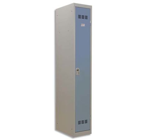 Construction monobloc soudée en tôle d'acier 1er choix épaisseur 0,7 mm. Socle fond plat. Perforations à l'arrière du fond pour permettre l'évacuation des poussières et liquides. Fermeture par moraillon débraillable porte-cadenas (cadenas non fourni). Anti effraction par rotation. Niveau de résistance à l'effraction : classe C, selon la norme NF D65-760. Etagère soudée avec tube support cintre diamètre 16 mm. Tablette haute libérant un espace supérieur H.30 cm. Hauteur totale du vestiaire 180 cm.