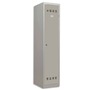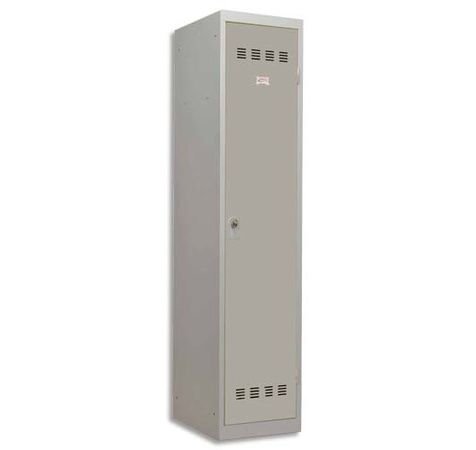 Construction monobloc soudée en tôle d'acier 1er choix épaisseur 0,7 mm. Socle fond plat. Perforations à l'arrière du fond pour permettre l'évacuation des poussières et liquides. Fermeture par moraillon débraillable porte-cadenas (cadenas non fourni). Anti effraction par rotation. Niveau de résistance à l'effraction : classe C, selon la norme NF D65-760. Etagère soudée avec tube support cintre diamètre 16 mm. Tablette haute libérant un espace supérieur H.30 cm. Hauteur totale du vestiaire 180 cm. Coloris : Gris perle