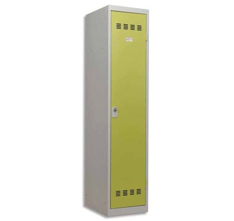 Construction monobloc soudée en tôle d'acier 1er choix épaisseur 0,7 mm. Socle fond plat. Perforations à l'arrière du fond pour permettre l'évacuation des poussières et liquides. Fermeture par moraillon débraillable porte-cadenas (cadenas non fourni). Anti effraction par rotation. Niveau de résistance à l'effraction : classe C, selon la norme NF D65-760. Etagère soudée avec tube support cintre diamètre 16 mm. Tablette haute libérant un espace supérieur H.30 cm. Hauteur totale du vestiaire 180 cm.
