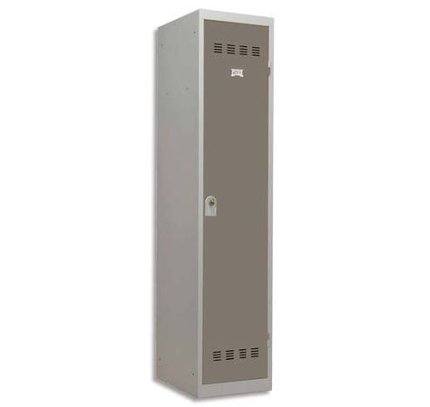 Construction monobloc soudée en tôle d'acier 1er choix épaisseur 0,7 mm. Socle fond plat. Perforations à l'arrière du fond pour permettre l'évacuation des poussières et liquides. Fermeture par moraillon débraillable porte-cadenas (cadenas non fourni). Anti effraction par rotation. Niveau de résistance à l'effraction : classe C, selon la norme NF D65-760. Etagère soudée avec tube support cintre diamètre 16 mm. Tablette haute libérant un espace supérieur H.30 cm. Hauteur totale du vestiaire 180 cm. Coloris : Gris perle/basalte