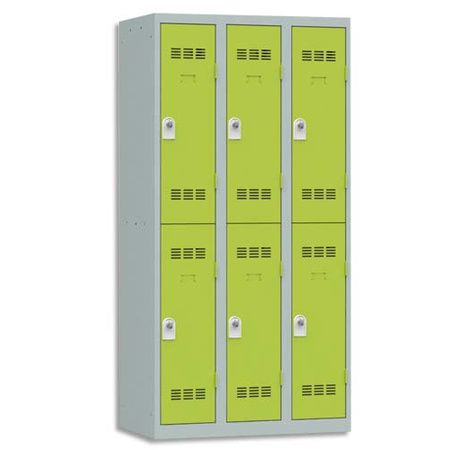 Construction monobloc soudée en tôle d'acier 1er choix épaisseur 0,7 mm. Socle fond plat. Perforations à l'arrière du fond pour permettre l'évacuation des poussières et liquides. Portes en métal avec porte étiquette. Fermeture par moraillon débraillable porte-cadenas (cadenas non fourni). Anti effraction par rotation. Niveau de résistance à l'effraction : classe C, selon la norme NF D65-760. Finition peinture en poudre époxy polyester. Dimensions d'une colonne (l x h x p) 30 x 180 x 50 cm. Livraison coloris Gris perle et Gris perle/Bleu : 20 jours, Gris perle/Anis et Gris perle/Basalte : 25 jours.