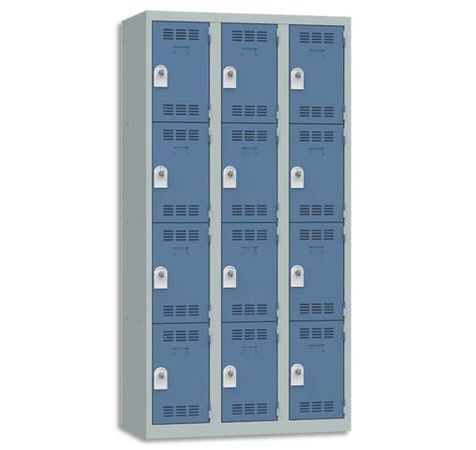 VINCO Vestiaire 4 Cases + 3 Colonnes - Dimensions : L90 x H180 x P50 cm gris perle bleu