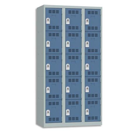 VINCO Vestiaire 5 Cases + 3 Colonnes - Dimensions : L90 x H180 x P50 cm gris perle bleu