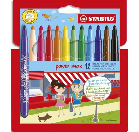 Pochette 12 Feutres De Coloriage Power. Pointe Large. Coloris Assortis