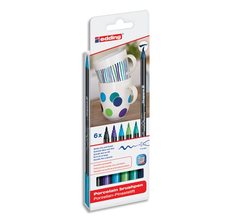 Feutre pointe pinceau pour décorer la porcelaine la céramique émaillée et le verre résistant au four. Encre pigmentée à base d'eau résistante au lave vaisselle (max 50°) après séchage (15 minutes) et cuisson au four (25 minutes à 160°). Encre non adaptée au contact alimentaire.