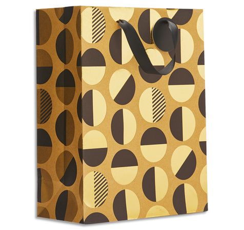 Sac cadeau papier grand format L26XH33cm Ronds Noirs/or. Papier kraft. Poignées en ruban