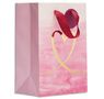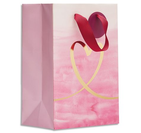 Sac cadeau papier petit format L16xH23cm Rose Cœur. Finition Or à chaud. Poignées en ruban