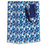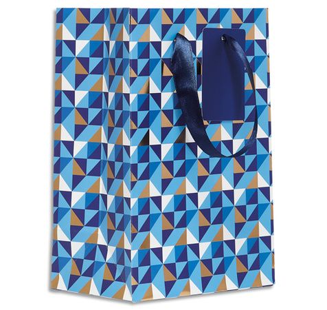 Sac cadeau papier petit format L16xH23cm Bleu triangle couleur.Finition or à chaud.Poignées ruban