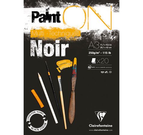 Bloc PAINT'ON Noir collé en tête 20F 250g A3