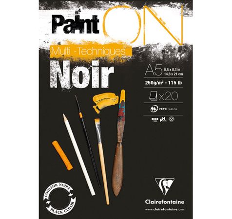 Bloc PAINT'ON Noir collé en tête 20F 250g A5.