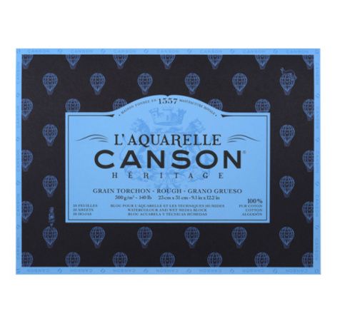 Papier 100% coton fabriqué sur forme ronde. Une nouvelle génération de collage sans gélatine. Transparence et vivacité des couleurs. Permet la superposition des couleurs. Des lavis parfaits, sans accumulation de pigment ni bavure incontrôlée - la répartition des pigments est contrôlée. Facile à corriger, reprise des blancs facilitée, même à sec. Possibilité de repeindre sur le papier même après plusieurs mois. 3 surfaces : Grain fin, torchon et satiné. Respect des attributs traditionnel : bords frangés, filigranes, surface extrêmement harmonieuse, non mécanique. Existe en feuilles, en bloc collé 4 côtés et en bloc collé 1 côté.