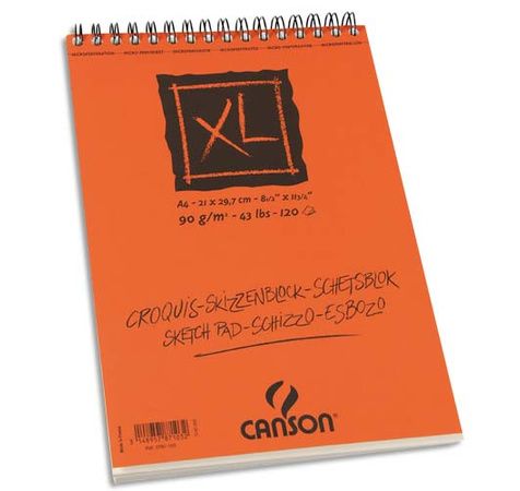 Le bloc spiralé, petit côté, est composé de 60 ou 120 feuilles (suivant les formats) de papier ivoire Canson® XL® Croquis grain léger 90g/m². Il est le support idéal pour le croquis rapide ou l’étude au crayon, fusain, sanguine, pastel.