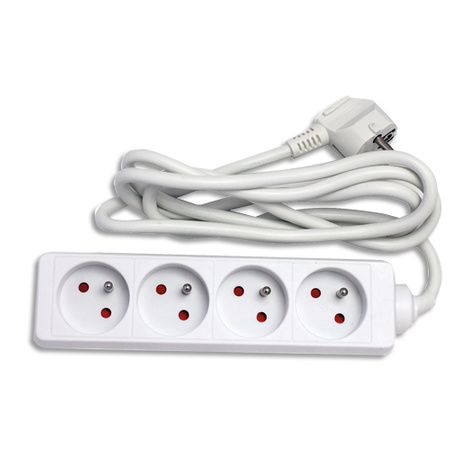 Bloc multiprises 2 P + T 10/16 A avec protection enfants à éclipses. Puissance : 3500 W. Cordon blanc.