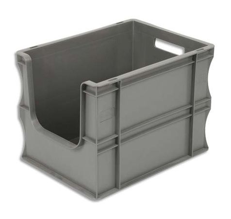 Accès facile du fait de leur large ouverture. Bacs de rangement à ouverture sur la largeur ou la longueur. En polypropylène gris. Gerbables. Norme Européenne.
