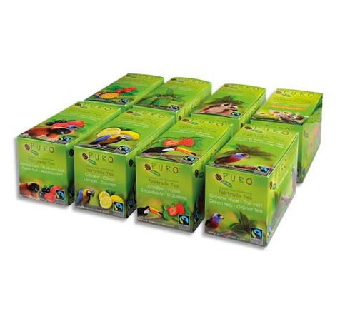 8 boîtes de 25 sachets de thé en sachet individuel. Assortiment de 8 boîtes Earl grey, thé vert, fraise, citron, fruits des bois, rooisbos, fruit d'églantier, menthe.