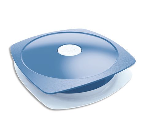 Design en forme d'assiette pour manger comme à la maison. Contenance 900 ml. Etanche pour transporter tous types de repas. Valve micro-ondes pour réchauffer avec le couvercle. Sans BPA. Compatible lave-vaisselle. Coloris bleu orage. Diamètre 20,5 cm, hauteur 5,75 cm.