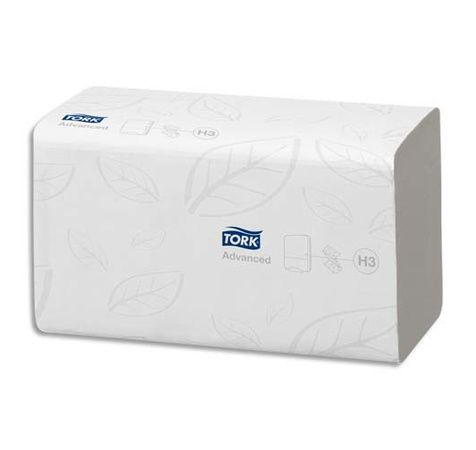 Double épaisseur, ouate de cellulose blanche, motif laurier. Pliage V. Format 23 x 23 cm. Qualité advanced . Distributeur H3.