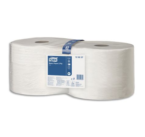 TORK Lot de 2 Bobines papier d'essuyage Basic W1 510 mètres, 2 plis, Format prédécoupé 23,5 x 34 cm