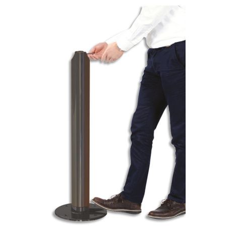 En aluminium thermolaqué. Grâce à son levier à commande au pied, la colonne ne nécessite aucun contact manuel. Une légère pression du pied sur la pédale libère la bonne dose de gel. Adaptable à toutes les bouteilles avec poussoir d'un diamètre 11 cm max. Hauteur : 30 cm max. Ne nécessite aucune alimentation électrique, et ne contient aucun élément électronique. Pas de panne possible. Fixation antivol au sol ; système anti-vol du flacon. Livré avec flacon pompe vide. Hauteur 1 m. Diamètre au sol 33 cm.