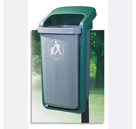 Vidage par décrochage du bac. Verrouillage par serrure inviolable. Nettoyage facilité grâce aux rebords arrondis. Fixation murale ou sur poteau. En polyéthylène traité anti-UV. Coloris vert. Dimensions (l x h x p) : 39 x 84,5 x 46 cm.