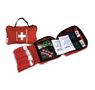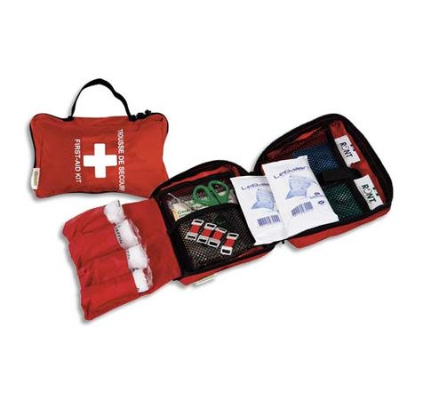Pochette souple en nylon rouge pour 1 à 4 personnes. Convient pour équiper les véhicules. Contenu : 1 couverture de survie, 10 pansements adhésifs, 2 bandes extensibles 3 m x 7 cm et 2 bandes de gaze de 3 m x 7 cm, 1 rouleau de sparadrap 5 m x 2 cm, 2 sachets de 5 compresses stériles 20 x 20 cm, 4 clips de fixation, 3 compresses désinfectantes Alcool 70°, 3 à la chlorexidine, 3 anti-coups et 3 anti-moustiques, 1 paire de ciseaux, 2 paires de gants vinyle, 1 pince à échardes, 1 guide de premiers secours.