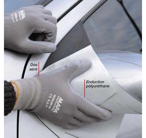 Gants fins en polyamide sans couture avec enduction polyuréthane antidérapante sur la paume et les doigts. Dos aéré. Elastiques aux poignets. Excellente préhension même en milieu humide ou gras. Pour travaux mécaniques courants et manipulations dans les industries de haute technologie. Lot de 10 paires.