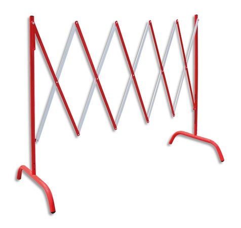 Barrière extensible en acier peinture epoxy anti-UV Rouge blanche - Dim L20/230 x H100/105 x P40 cm
