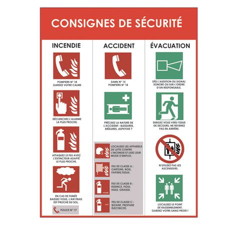Panneau "Consigne de sécurité" incendie accident évacuation blanc rouge PVC