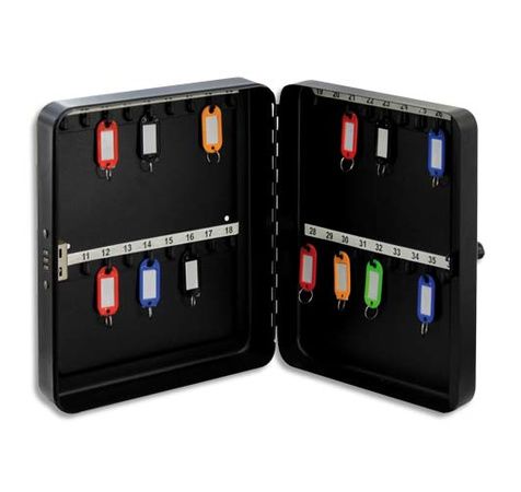 Armoires à clés en tôle d'acier emboutie, épaisseur 8/10ème. Coloris gris foncé. Barrettes fixes avec pastilles adhésives d'identification numérotées. Livrées avec visserie pour fixation murale et sans porte-clés.