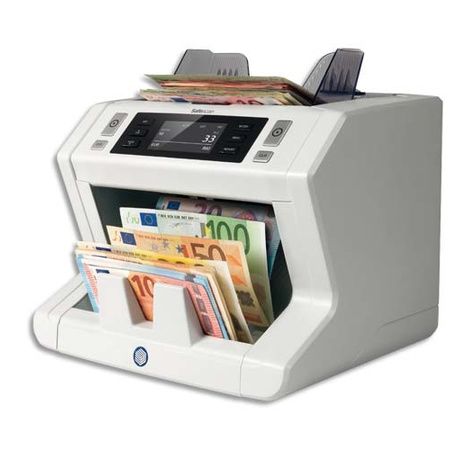 Comptage des billets Euro avec détection sextuple de faux billets (Safescan 2660/2665). Détection UV uniquement pour le modèle 2610. 6 devises par défaut : Euro, GBP, USD, PLN, SEK & NOK. Convient à la fois pour la détection des billets Euros existants et la série de nouveaux billets “Europe”. Vitesse de comptage adaptable : 800, 1200 ou 1500 billets à la minute. Fonction de mise en liasses entre 1-200 billets. Capacité du bac de réception, 300 billets. Capacité de l'empileur, 220 billets. Grand écran LCD. Dimensions : 26,4 x 26,2 x 24,8 cm. Poids : 6,5k g. Alimentation : 110-240 Volts, 50/60Hz.