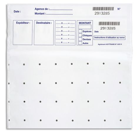 Sachet de sécurité opaque. Fermeture par ruban de sécurité anti-fraude. PE co-extrudé opaque 70my. Agréées AXYTRANS compatible SQS & transport traditionnel.