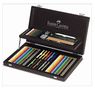 Pour l'artiste, ils sont un outil de travail représentatif, pour l'esthète un objet de design décoratif : les coffrets élégants en bois teinté couleur wengé.L'assortiment de base et les accessoires assortis se prêtent à chaque créatif comme outil de travail prestigieux. Un assortiment de base de crayons de couleur pour artistes et de pastels Polychromos, de crayons de couleur aquarellables Albrecht Dürer ainsi qu'un petit assortiment de PITT Monochrome se présente sur deux niveaux.