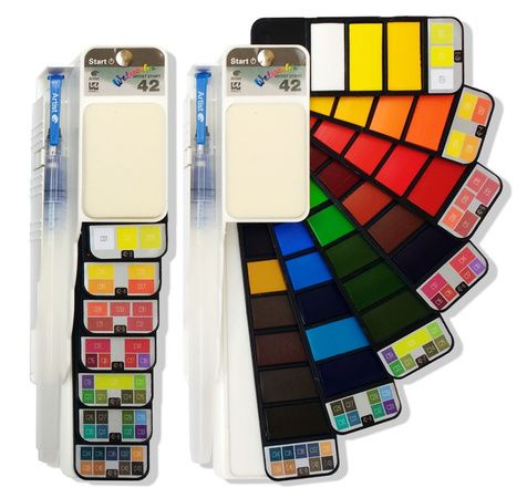 Coffret éventail aquarelle Start, set de 42 couleurs d'aquarelle + 1 pinceau. Pratique à transporter, ce coffret s'utilise dans vos déplacements de voyage. Une nouvelle façon de pratiquer l'Aquarelle en extérieur !